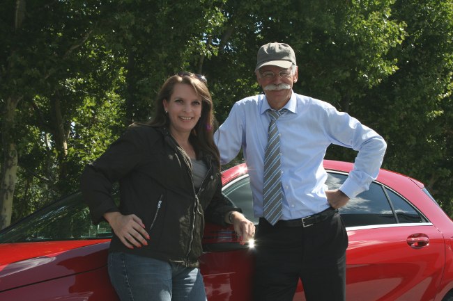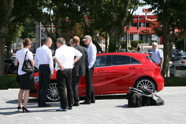 Als ich vor dem Museum stand, sah ich eine rote A-Klasse mit einer Menge beschäftigter Leute drumherum. Der weiße Schnäutzer fiel mir erst auf den zweiten Blick auf: Herr Zetsche war gerade mit einem Fotoshooting für ein Magazin beschäftigt. Die Gelegenheit ergab sich, einen Schritt näher zu treten. Und das Unglaubliche geschah: ich wurde ihm vorgestellt und konnte locker ein paar Sätze mit dem Bigboss Zetsche plaudern.