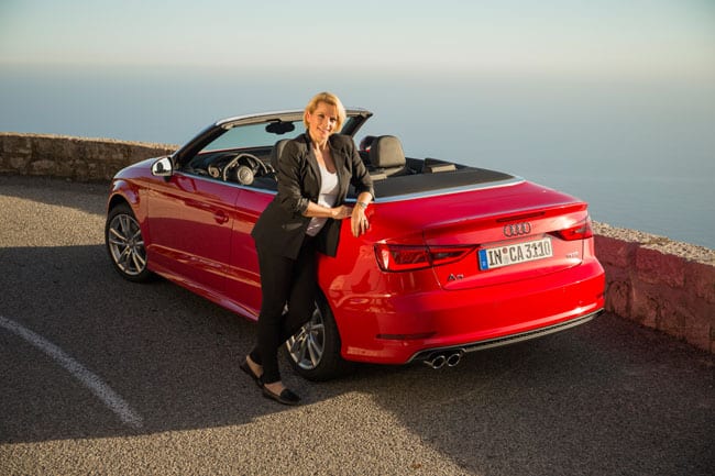 So sind wir – jede ist in ihr „eigenes“ Audi A3 Cabrio gestiegen – erstmal die französischen Bergstraßen hochgeheizt. Serpentine, Serpentine und dann noch eine. Das A3 Cabrio in den „Dynamic Mode“ (drive select Schalter) gestellt und schon machten die Kurven und Steigungen noch mehr Spaß. Wir fuhren die immer enger werdenden Straßen hinauf und auf einmal kam ein riesiger und breiter Lkw entgegen. Doch der A3 in der offenen Version ist (meiner Meinung) sehr übersichtlich und so hangelten wir uns locker dran vorbei. Wieder aufs Gas, Kurve, Gerade, Serpentine, immer höher. Die langen Haare von Isa wirbelten ein wenig umher, doch das Windschott sorgte dafür, dass sie keine Küsten-Sturm-Frisur bekam. Meine kurzen Haare machten da sowieso keine Probleme mehr. Sonnenbrille auf und den rechten Fuß aufs Gas. Yes!
