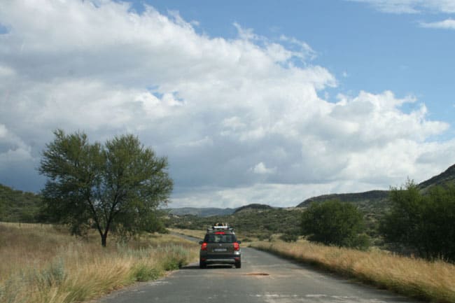 Schnell ging es auf die sogenannten Landstraßen. Natur pur – rechts und links. Wir auf der linken Straßenseite. Ja, es kommen doch immer mal wieder Fahrzeuge entgegen. Träumen sollte man nicht, die Straßen verlangen höchste Aufmerksamkeit. Schlaglöcher, schlechte Wegstrecke, umherlaufende Tiere oder deren Hinterlassenschaften. Schneller als 120 km/h sind wir selten auf Asphalt gefahren (ist auch nicht erlaubt).