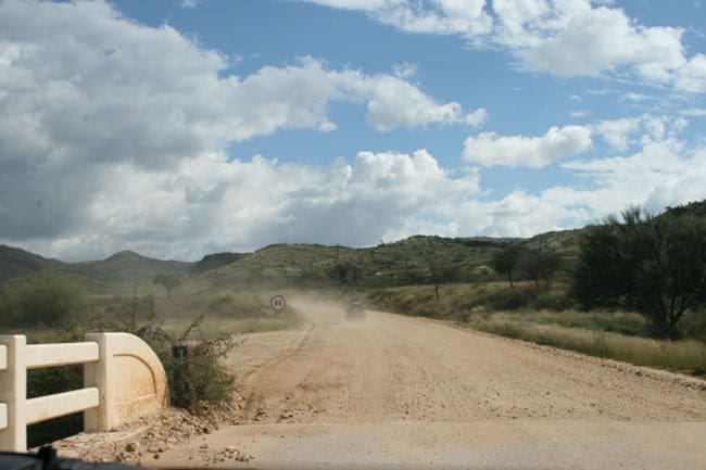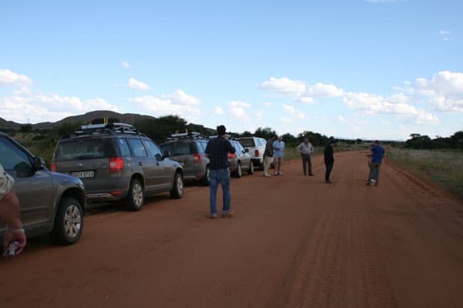Start in Windhoek, der Tourmanager im weißen Touareg, dahinter 5 Škoda Yeti, jeweils besetzt mit 2 Personen. Aufregung machte sich breit. Was erwartet uns? Natürlich liest man vorher einiges. Aber wie fühlt es sich an? Das erste, was ungewohnt ist, wir fahren auf der linken Straßenseite mit einem Linkslenker. Aber so flexibel sollte man als routinierte Autofahrerin sein. Mir hat das nichts ausgemacht. Außerdem war das ja nur der Teil, der relevant war, wo wir noch auf der Straße mit etwas mehr Straßenverkehr fuhren.