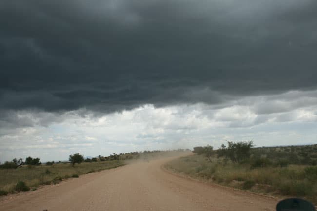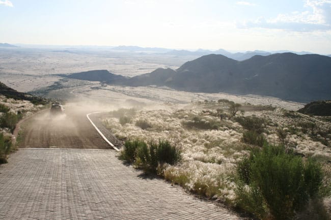 Genau so warnten wir uns – viel wichtiger – vor Gegenverkehr. Wir waren ganz schön am Quatschen manchmal . Und auf einmal wird Dir klar, dass Du – zusammen mit den anderen ein Team bildest. Allein ist man ein Nichts auf Pisten und in der Wüste Namib. Die Gefühle schwanken zwischen Erkenntnis, fast schon Demut und Freude, fast schon Euphorie – wegen der schönen Landschaft. Emotions-Ping-Pong. Aber klasse!