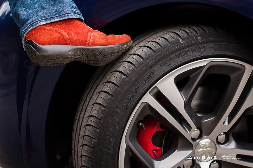 Kupplung, Bremsen und Reifen hatten die optimale Betriebstemperatur, Gas war rechts. Aber natürlich immer mit der gebotenen Vorsicht, denn wir befanden uns zwar auf Teilstrecken, die auch für Rallyes genutzt werden, jedoch im öffentlichen Straßenverkehr. Niedlich geradezu die roten Akzente, die Peugeot in der GTi-Version setzt. Selbst bis ins kleinste Detail der Bremssättel. Außen sind es Schriftzüge rundherum und vorn auch das Element unten im Grill.